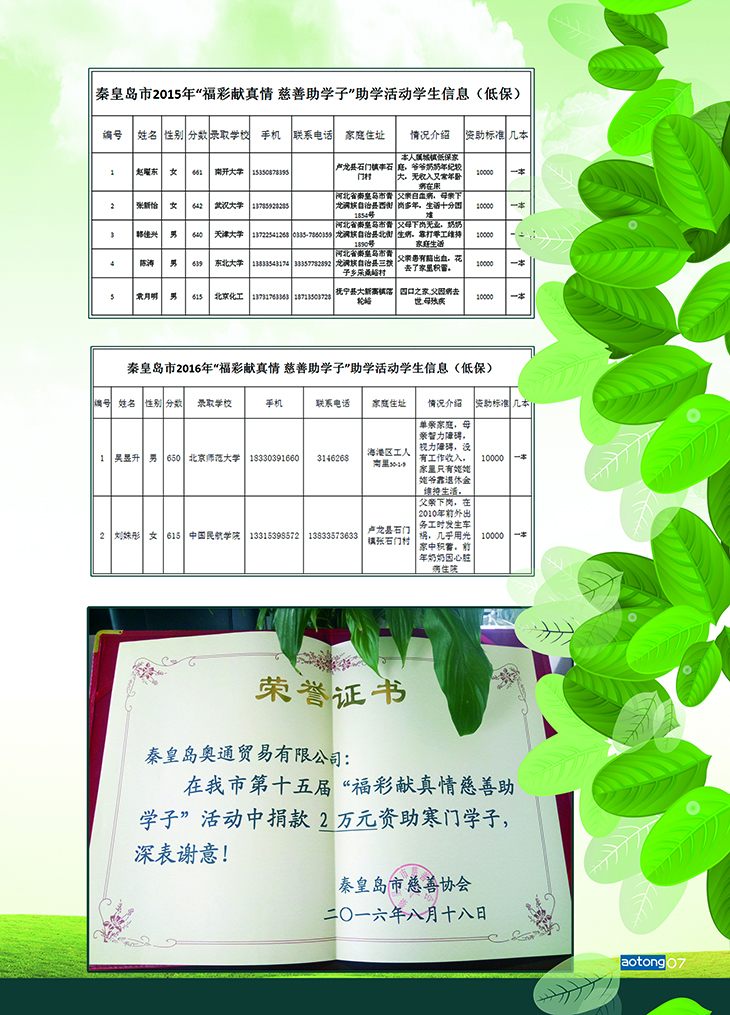 我市“福彩獻(xiàn)真情 慈善助學(xué)子”活動從2002年至今,已累計(jì)投入資助金3200萬元,資助人數(shù)6600多人,曾多次榮獲中華慈善總會、省慈善總會兩級慈善項(xiàng)目獎,已成為我市最具影響力的一個(gè)公益品牌,為秦皇島這座“中國最具愛心城市”提供了生動的注腳。